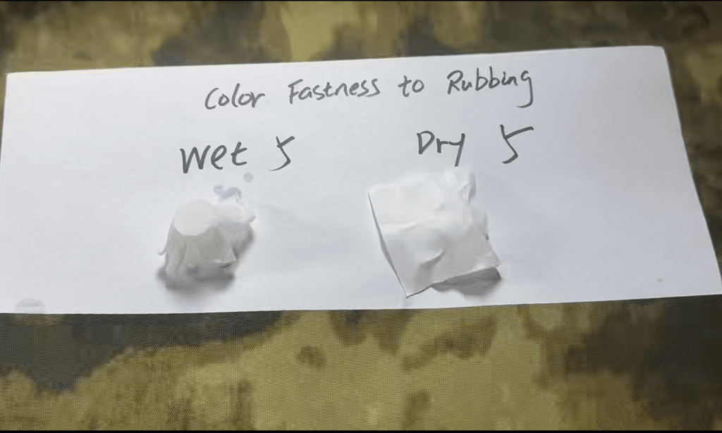 Rubbing fastness test photo for reference. Results may vary by colorway and test method; detailed test information is available upon request.