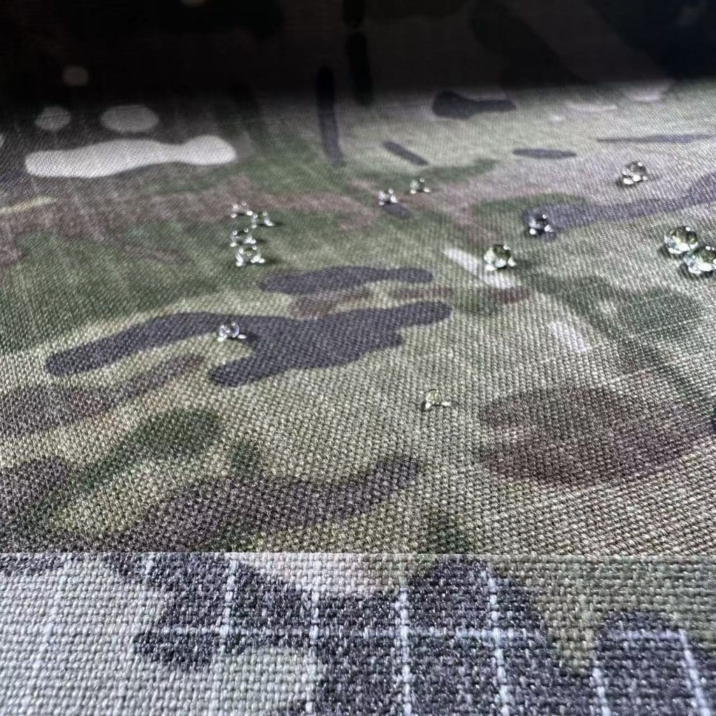 Nylon 330D Cordura Fabric IRR Camouflage Waterproof Pu Coating, Waterproof test photo (2500 mmH₂O) for reference. Actual performance depends on coating level and test method. Detailed test data is available upon request.